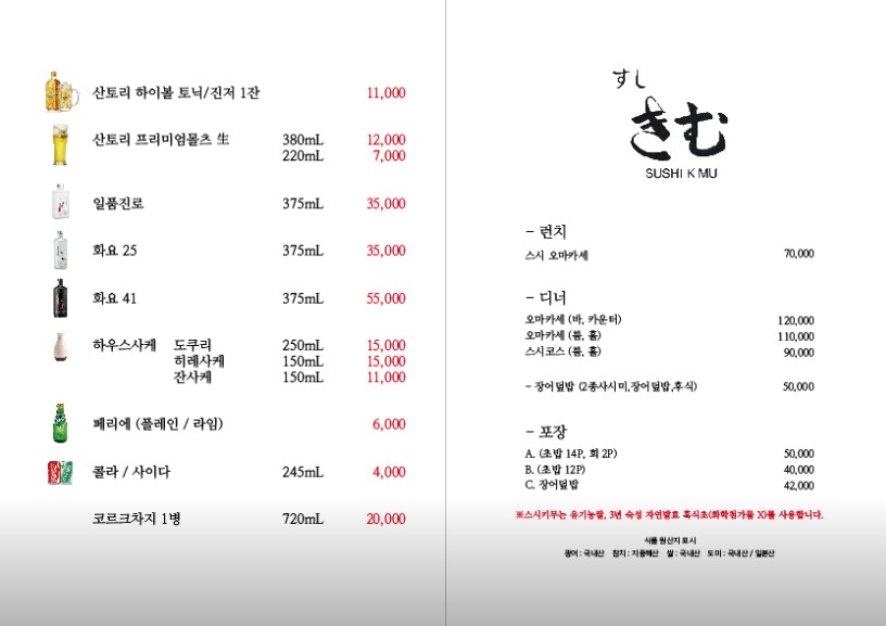 - 디너 오마카세: 18:00 ~ 21:00 (₩110,000~120,000)
